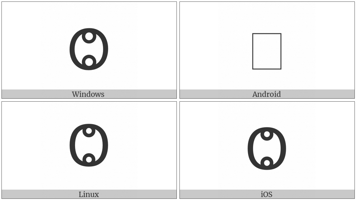 The image below shows how the “Glagolitic Capital Letter Otu” symbol might look like on different operating systems. If the font in which this web site is displayed does not contain the symbol and there is no fallback font able to render it, you can use the image below to get an idea of what it should look like.
