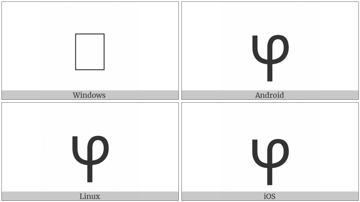 The image below shows how the “Coptic Small Letter Old Nubian Nyi” symbol might look like on different operating systems. If the font in which this web site is displayed does not contain the symbol and there is no fallback font able to render it, you can use the image below to get an idea of what it should look like.