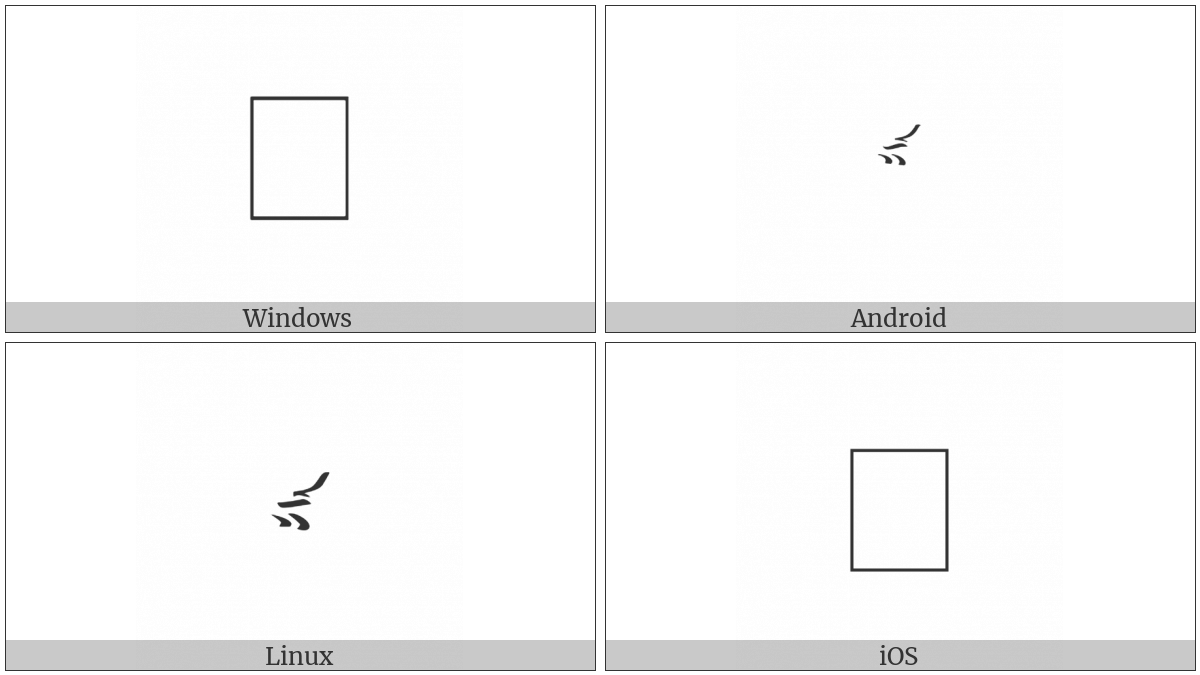 The image below shows how the “Byzantine Musical Symbol Fanerosis Tetrafonias” symbol might look like on different operating systems. If the font in which this web site is displayed does not contain the symbol and there is no fallback font able to render it, you can use the image below to get an idea of what it should look like.
