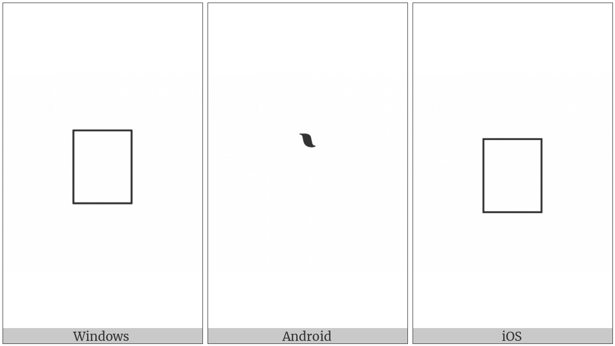 The image below shows how the “Byzantine Musical Symbol Kentima Neo Kato” symbol might look like on different operating systems. If the font in which this web site is displayed does not contain the symbol and there is no fallback font able to render it, you can use the image below to get an idea of what it should look like.