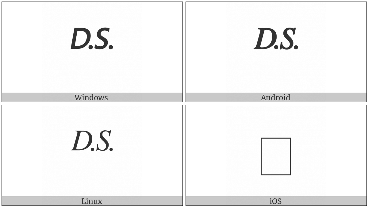 The image below shows how the “Musical Symbol Dal Segno” symbol might look like on different operating systems. If the font in which this web site is displayed does not contain the symbol and there is no fallback font able to render it, you can use the image below to get an idea of what it should look like.