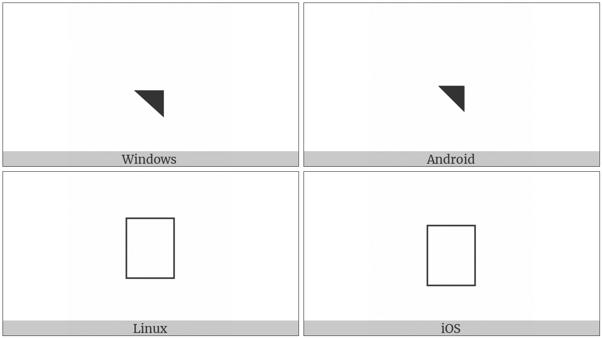 The image below shows how the “Musical Symbol Triangle Notehead Up Right Black” symbol might look like on different operating systems. If the font in which this web site is displayed does not contain the symbol and there is no fallback font able to render it, you can use the image below to get an idea of what it should look like.
