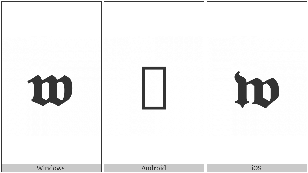 The image below shows how the “Mathematical Bold Fraktur Small W” symbol might look like on different operating systems. If the font in which this web site is displayed does not contain the symbol and there is no fallback font able to render it, you can use the image below to get an idea of what it should look like.