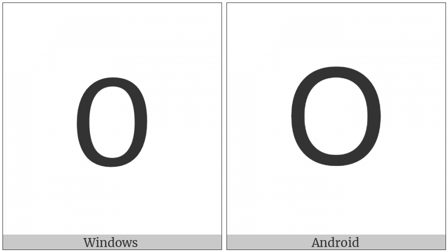 The image below shows how the “Mathematical Sans-Serif Capital O” symbol might look like on different operating systems. If the font in which this web site is displayed does not contain the symbol and there is no fallback font able to render it, you can use the image below to get an idea of what it should look like.