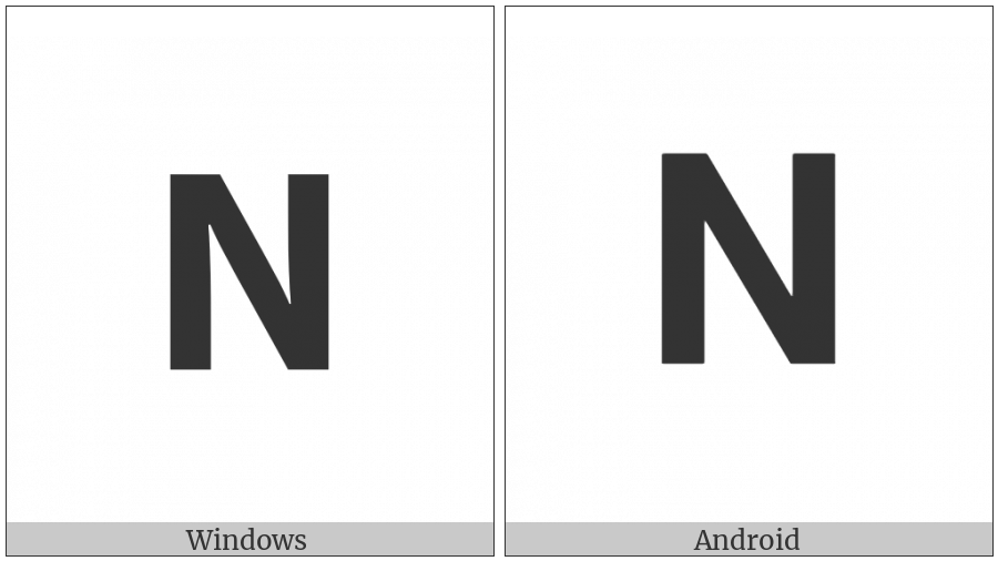 The image below shows how the “Mathematical Sans-Serif Bold Capital Nu” symbol might look like on different operating systems. If the font in which this web site is displayed does not contain the symbol and there is no fallback font able to render it, you can use the image below to get an idea of what it should look like.
