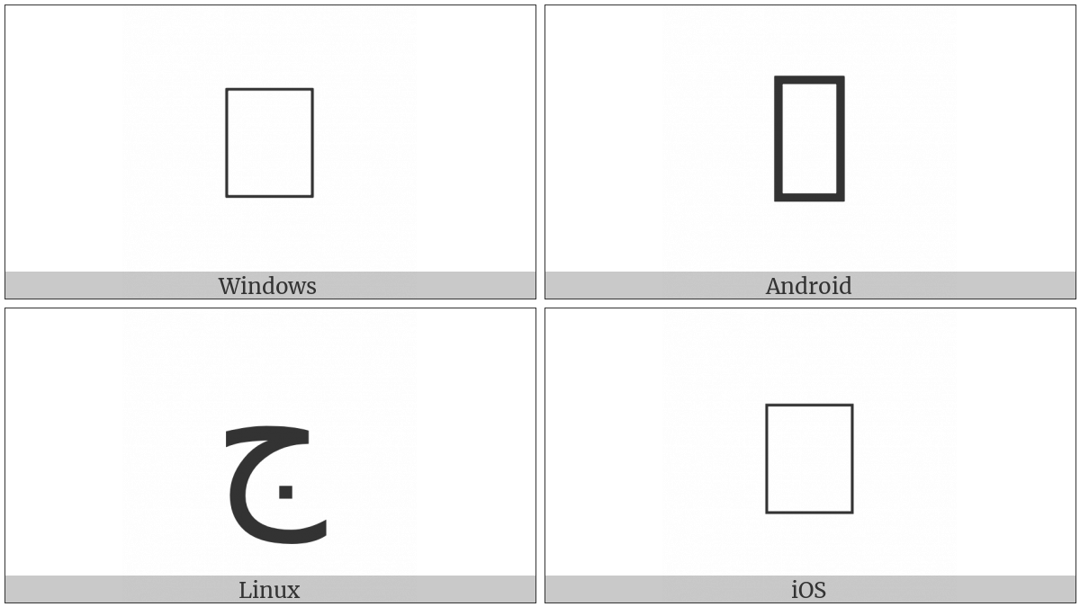 The image below shows how the “Arabic Mathematical Jeem” symbol might look like on different operating systems. If the font in which this web site is displayed does not contain the symbol and there is no fallback font able to render it, you can use the image below to get an idea of what it should look like.