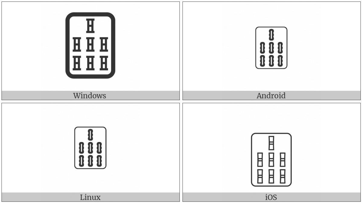 The image below shows how the “Mahjong Tile Seven Of Bamboos” symbol might look like on different operating systems. If the font in which this web site is displayed does not contain the symbol and there is no fallback font able to render it, you can use the image below to get an idea of what it should look like.