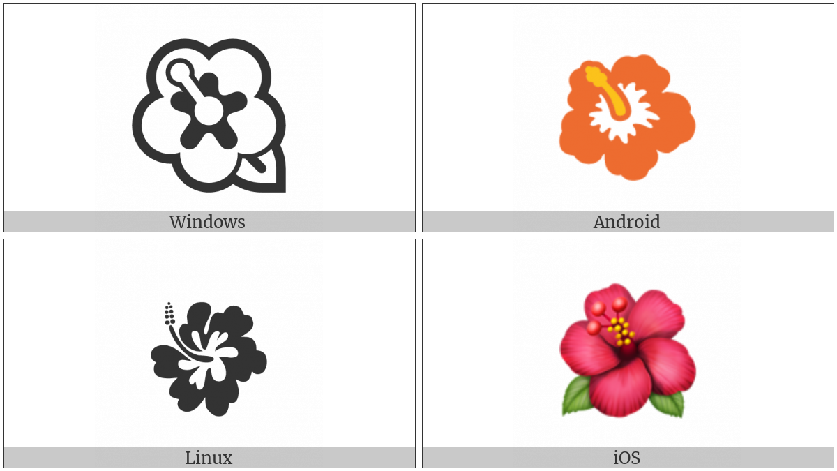 The image below shows how the “Hibiscus” symbol might look like on different operating systems. If the font in which this web site is displayed does not contain the symbol and there is no fallback font able to render it, you can use the image below to get an idea of what it should look like.