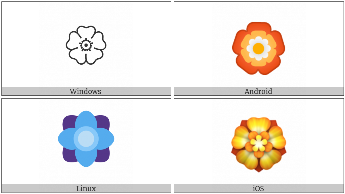 The image below shows how the “Rosette” symbol might look like on different operating systems. If the font in which this web site is displayed does not contain the symbol and there is no fallback font able to render it, you can use the image below to get an idea of what it should look like.
