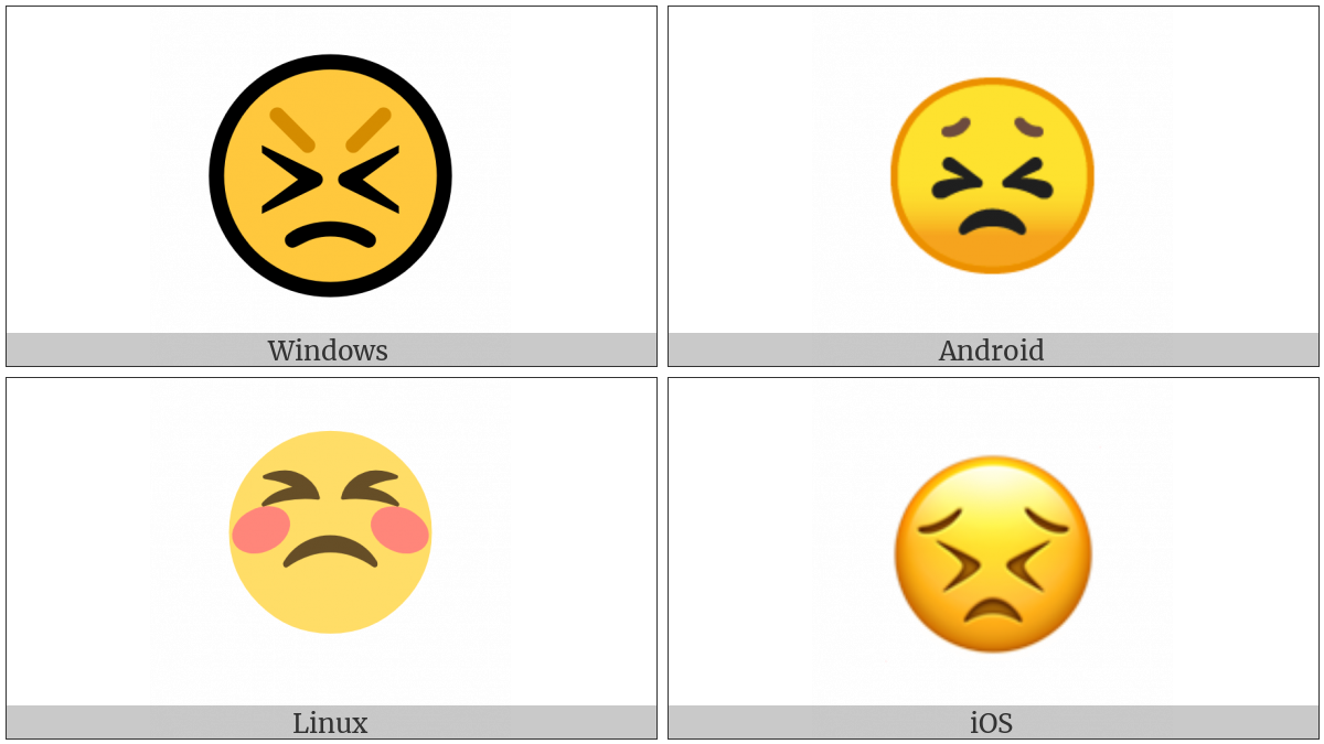 The image below shows how the “Persevering Face” symbol might look like on different operating systems. If the font in which this web site is displayed does not contain the symbol and there is no fallback font able to render it, you can use the image below to get an idea of what it should look like.