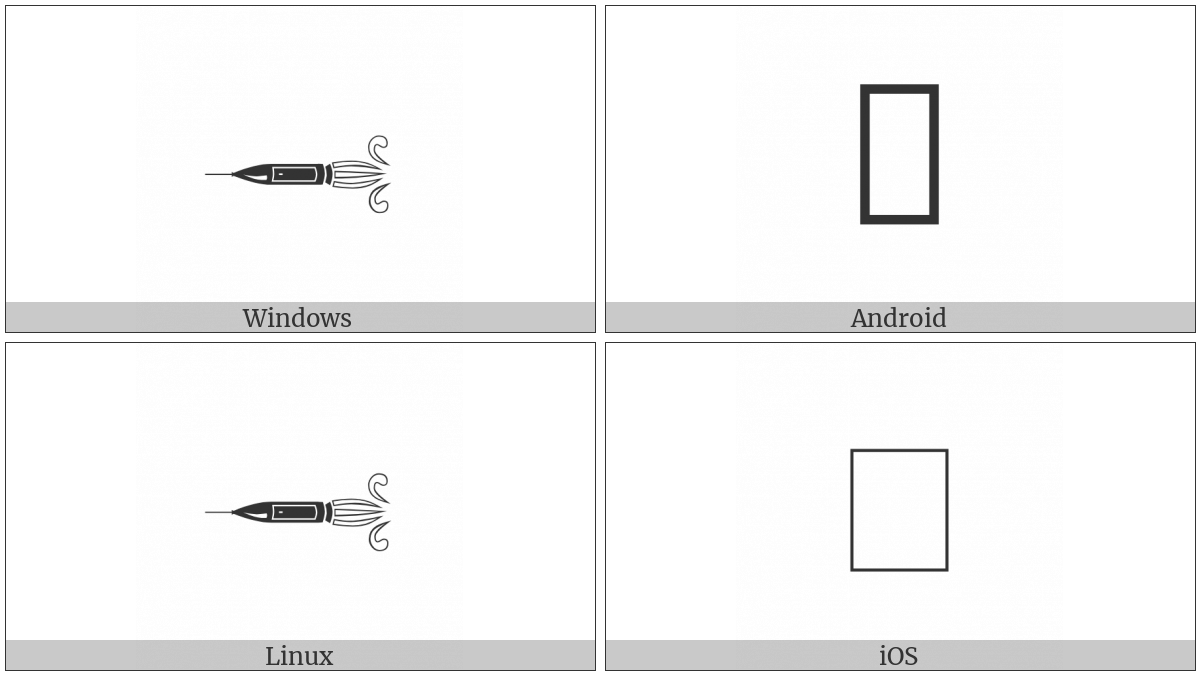 The image below shows how the “Leftwards Rocket” symbol might look like on different operating systems. If the font in which this web site is displayed does not contain the symbol and there is no fallback font able to render it, you can use the image below to get an idea of what it should look like.