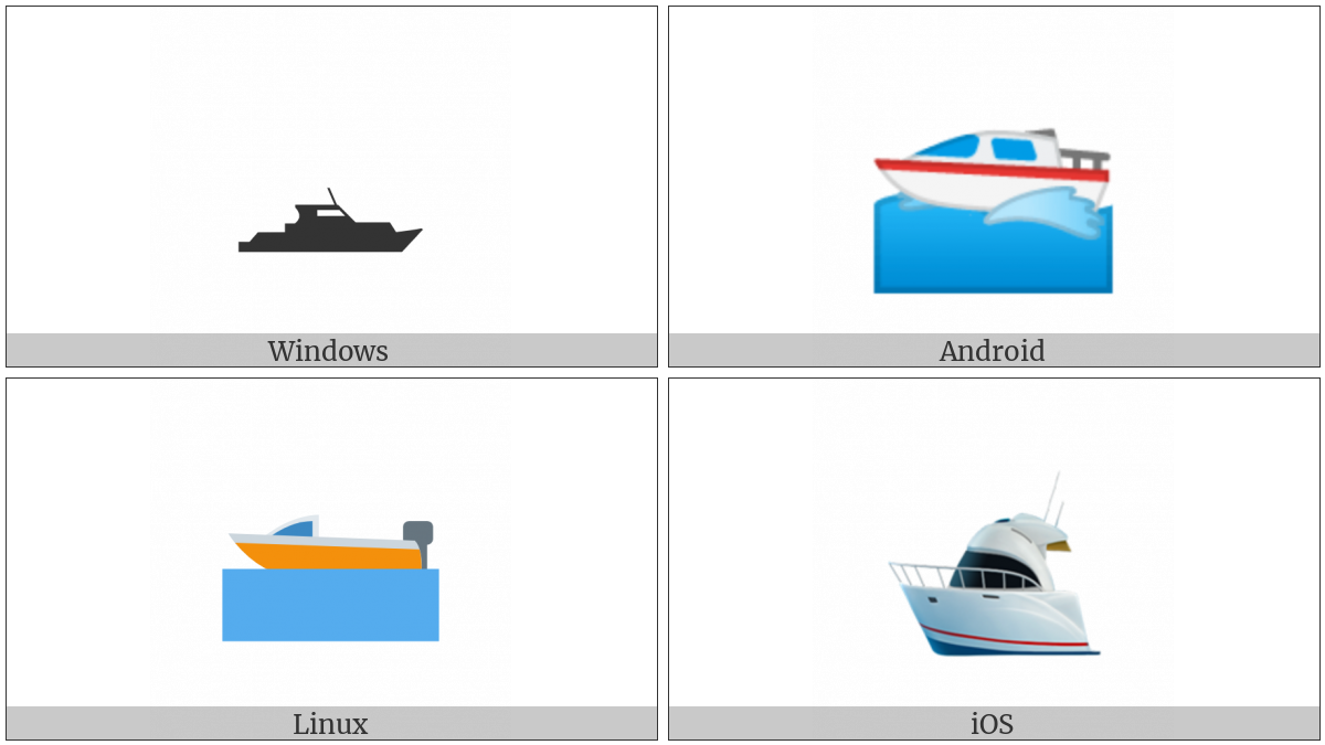 The image below shows how the “Motor Boat” symbol might look like on different operating systems. If the font in which this web site is displayed does not contain the symbol and there is no fallback font able to render it, you can use the image below to get an idea of what it should look like.