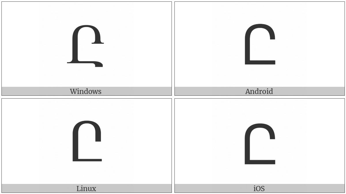 The image below shows how the “Armenian Capital Letter Et” symbol might look like on different operating systems. If the font in which this web site is displayed does not contain the symbol and there is no fallback font able to render it, you can use the image below to get an idea of what it should look like.