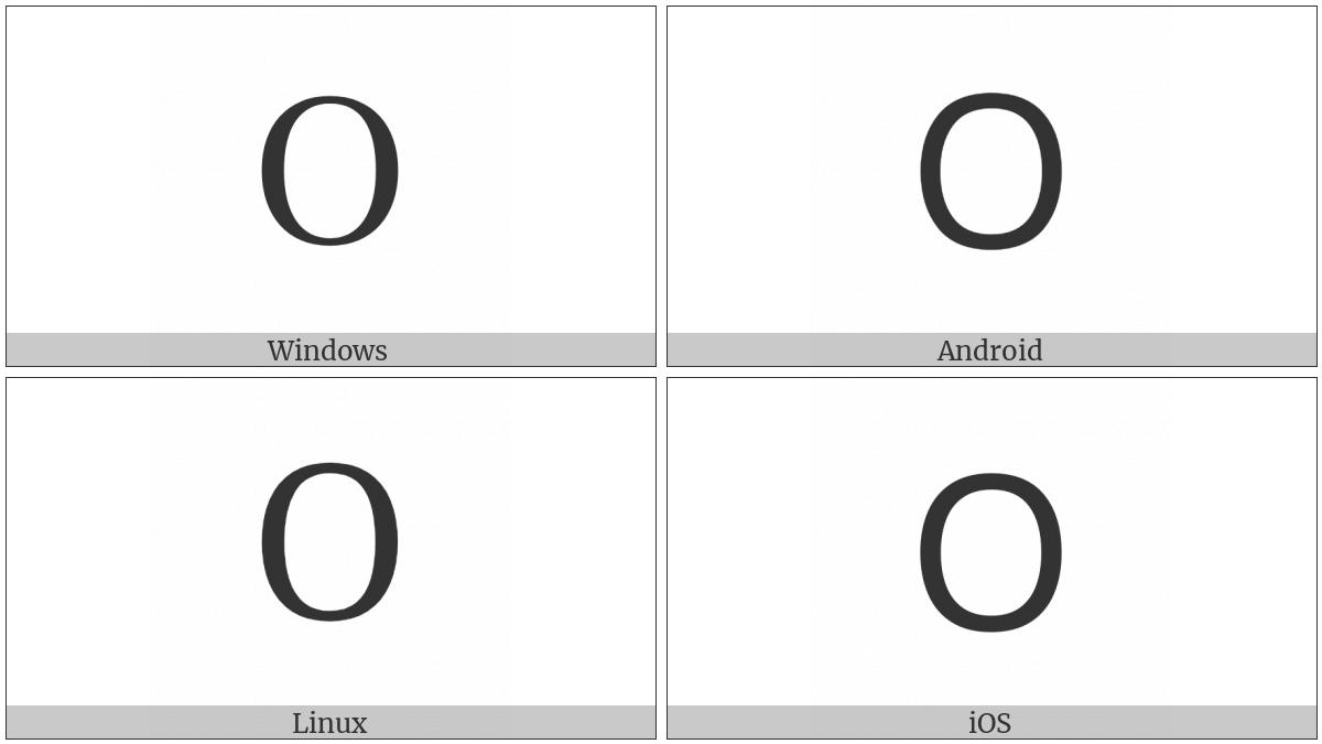 The image below shows how the “Armenian Capital Letter Oh” symbol might look like on different operating systems. If the font in which this web site is displayed does not contain the symbol and there is no fallback font able to render it, you can use the image below to get an idea of what it should look like.