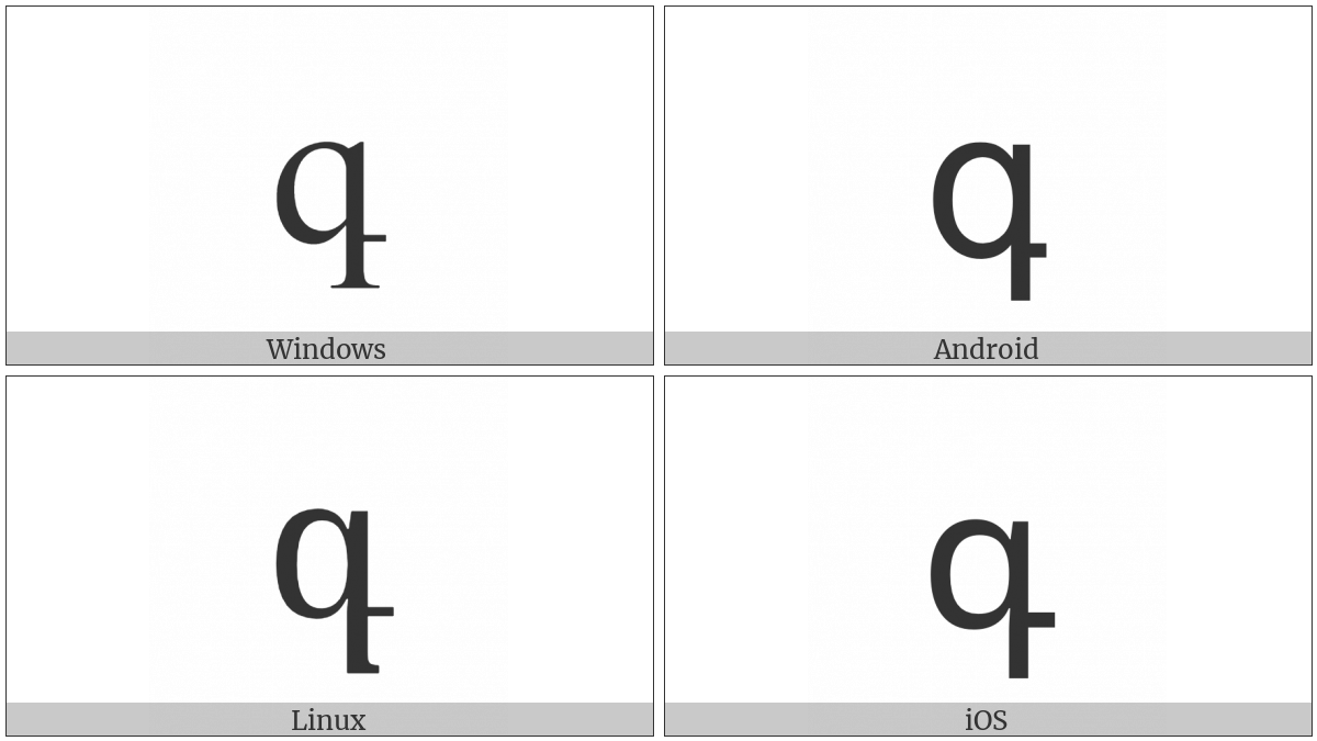 The image below shows how the “Armenian Small Letter Gim” symbol might look like on different operating systems. If the font in which this web site is displayed does not contain the symbol and there is no fallback font able to render it, you can use the image below to get an idea of what it should look like.