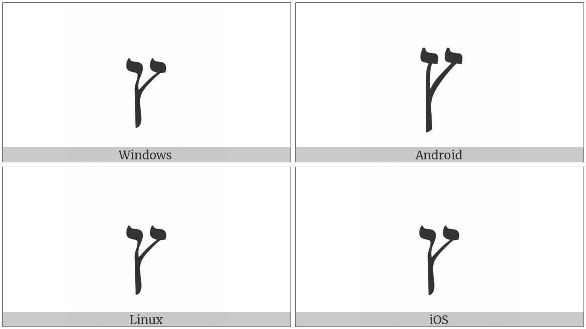 The image below shows how the “Hebrew Letter Final Tsadi” symbol might look like on different operating systems. If the font in which this web site is displayed does not contain the symbol and there is no fallback font able to render it, you can use the image below to get an idea of what it should look like.