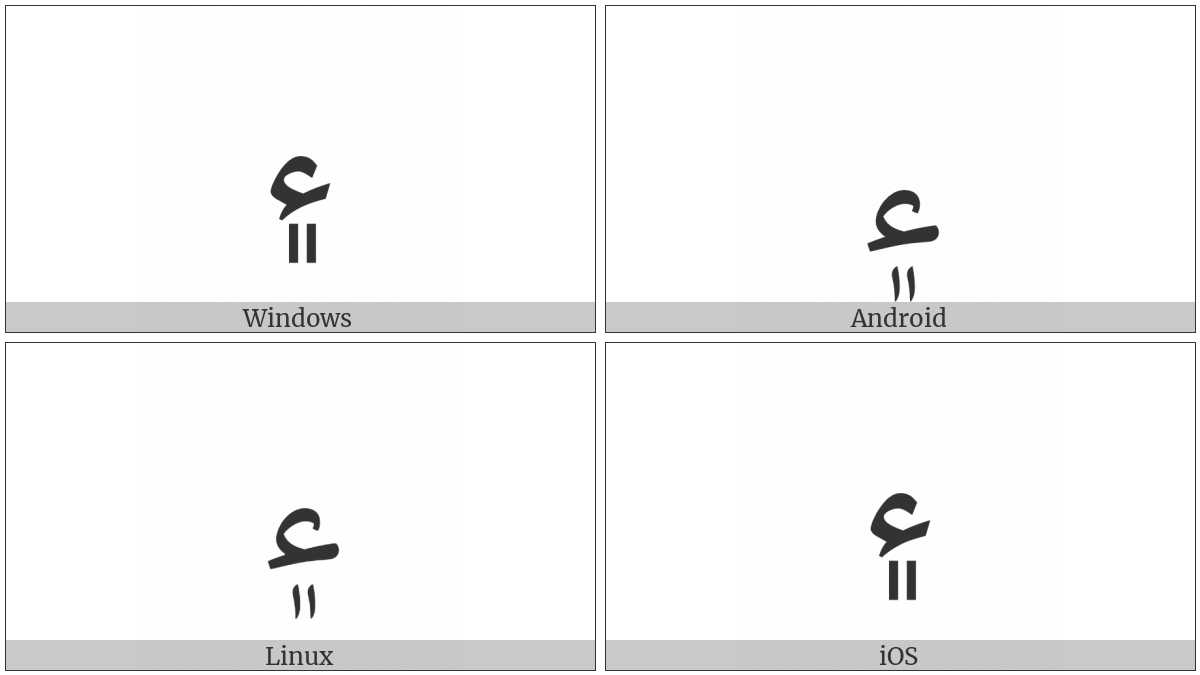 The image below shows how the “Arabic Sign Sindhi Ampersand” symbol might look like on different operating systems. If the font in which this web site is displayed does not contain the symbol and there is no fallback font able to render it, you can use the image below to get an idea of what it should look like.