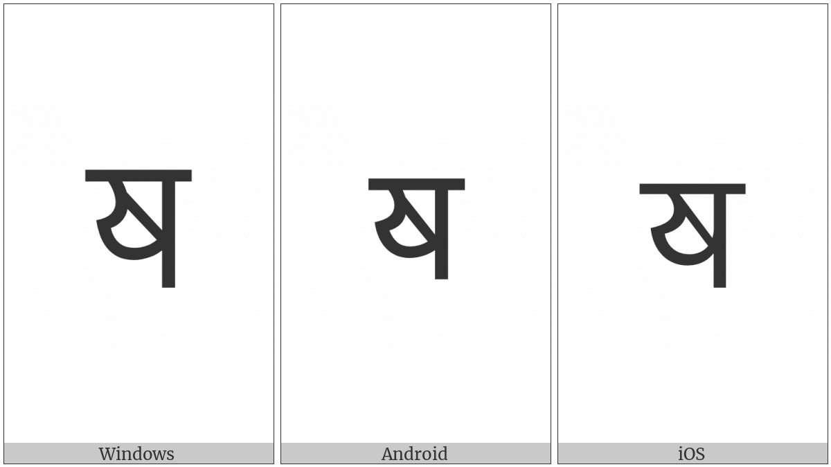 The image below shows how the “Devanagari Letter Heavy Ya” symbol might look like on different operating systems. If the font in which this web site is displayed does not contain the symbol and there is no fallback font able to render it, you can use the image below to get an idea of what it should look like.
