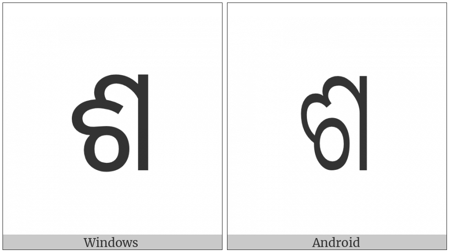 The image below shows how the “Oriya Letter Sha” symbol might look like on different operating systems. If the font in which this web site is displayed does not contain the symbol and there is no fallback font able to render it, you can use the image below to get an idea of what it should look like.