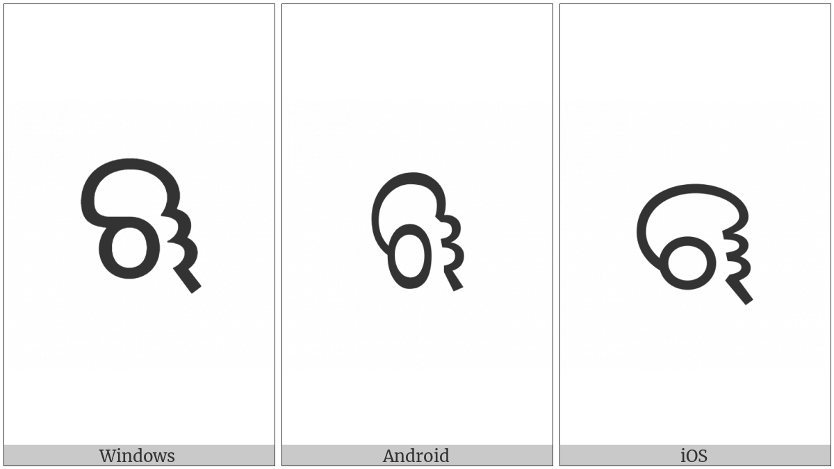The image below shows how the “Oriya Letter Vocalic Rr” symbol might look like on different operating systems. If the font in which this web site is displayed does not contain the symbol and there is no fallback font able to render it, you can use the image below to get an idea of what it should look like.