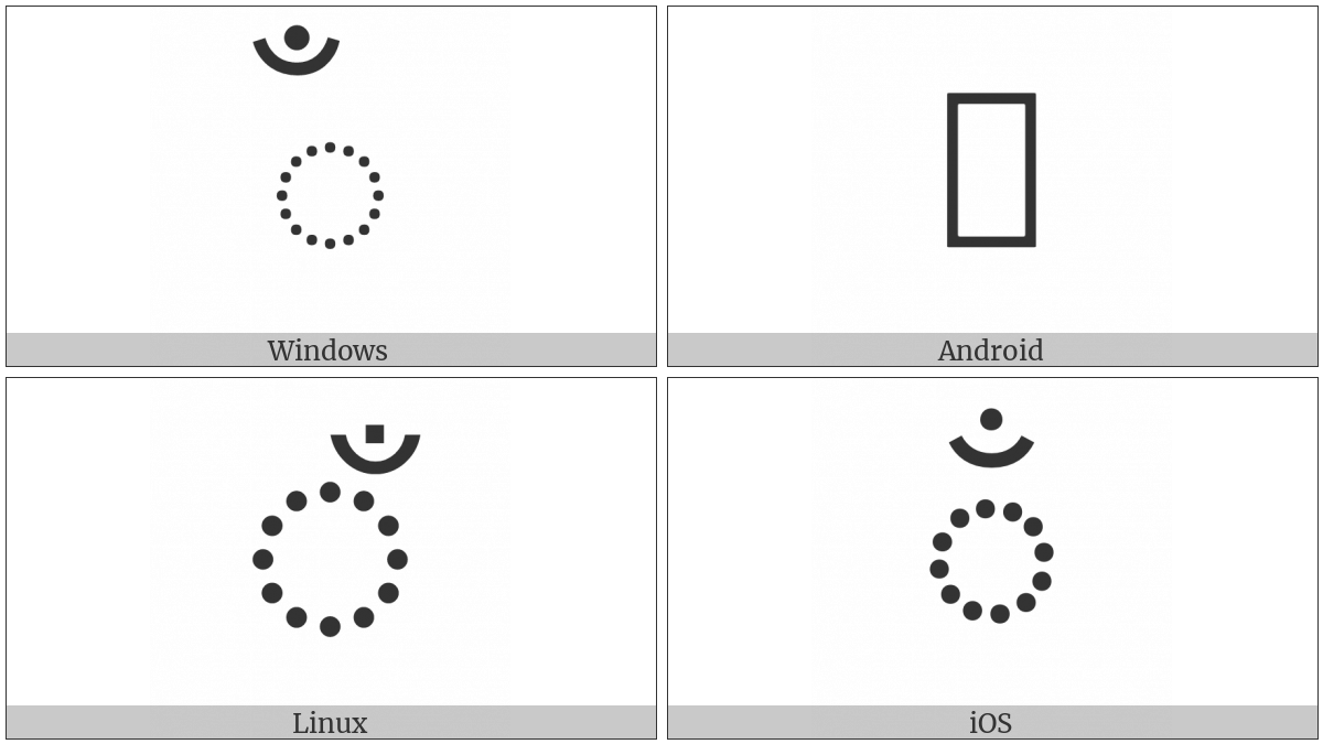 The image below shows how the “Telugu Sign Combining Candrabindu Above” symbol might look like on different operating systems. If the font in which this web site is displayed does not contain the symbol and there is no fallback font able to render it, you can use the image below to get an idea of what it should look like.