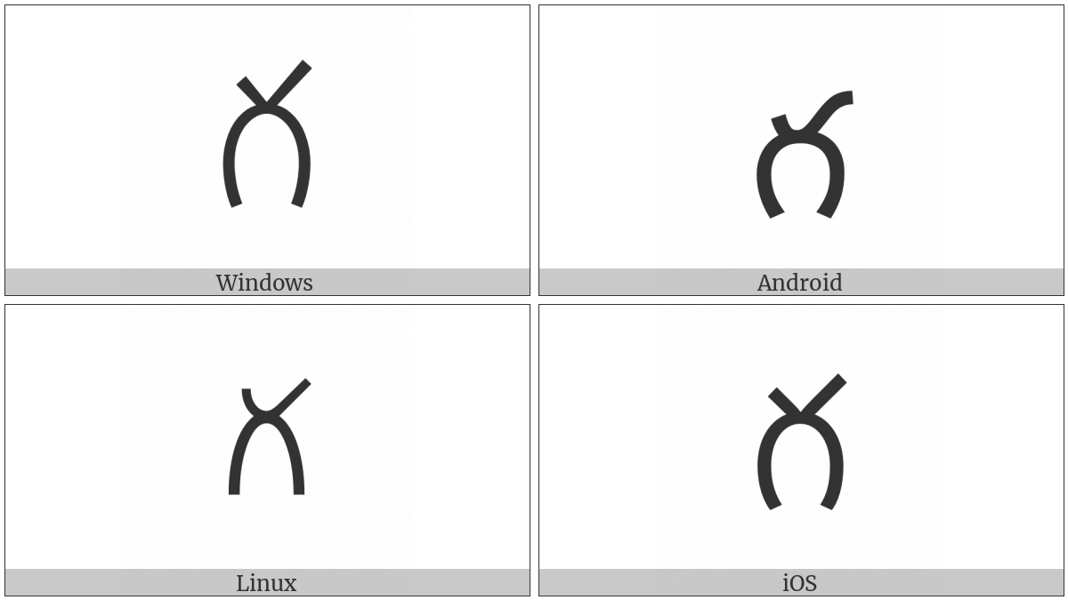 The image below shows how the “Telugu Letter Ga” symbol might look like on different operating systems. If the font in which this web site is displayed does not contain the symbol and there is no fallback font able to render it, you can use the image below to get an idea of what it should look like.
