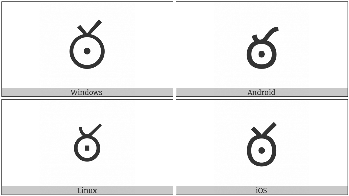 The image below shows how the “Telugu Letter Ttha” symbol might look like on different operating systems. If the font in which this web site is displayed does not contain the symbol and there is no fallback font able to render it, you can use the image below to get an idea of what it should look like.