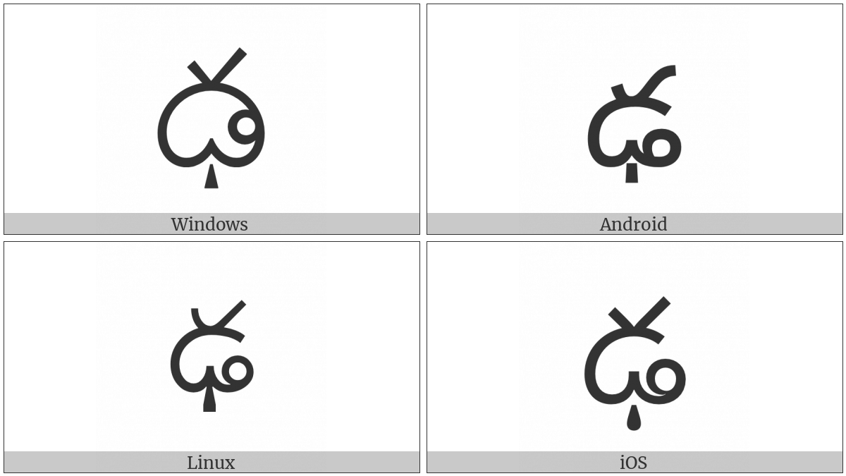 The image below shows how the “Telugu Letter Ddha” symbol might look like on different operating systems. If the font in which this web site is displayed does not contain the symbol and there is no fallback font able to render it, you can use the image below to get an idea of what it should look like.