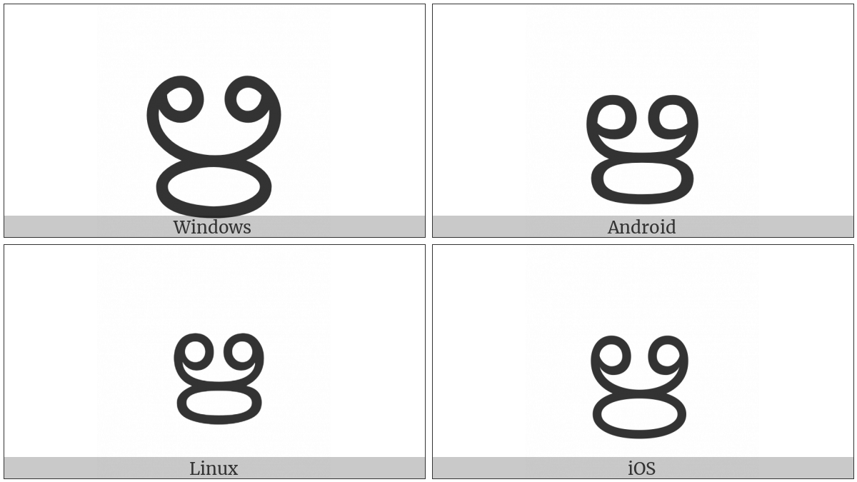 The image below shows how the “Malayalam Letter Vocalic R” symbol might look like on different operating systems. If the font in which this web site is displayed does not contain the symbol and there is no fallback font able to render it, you can use the image below to get an idea of what it should look like.