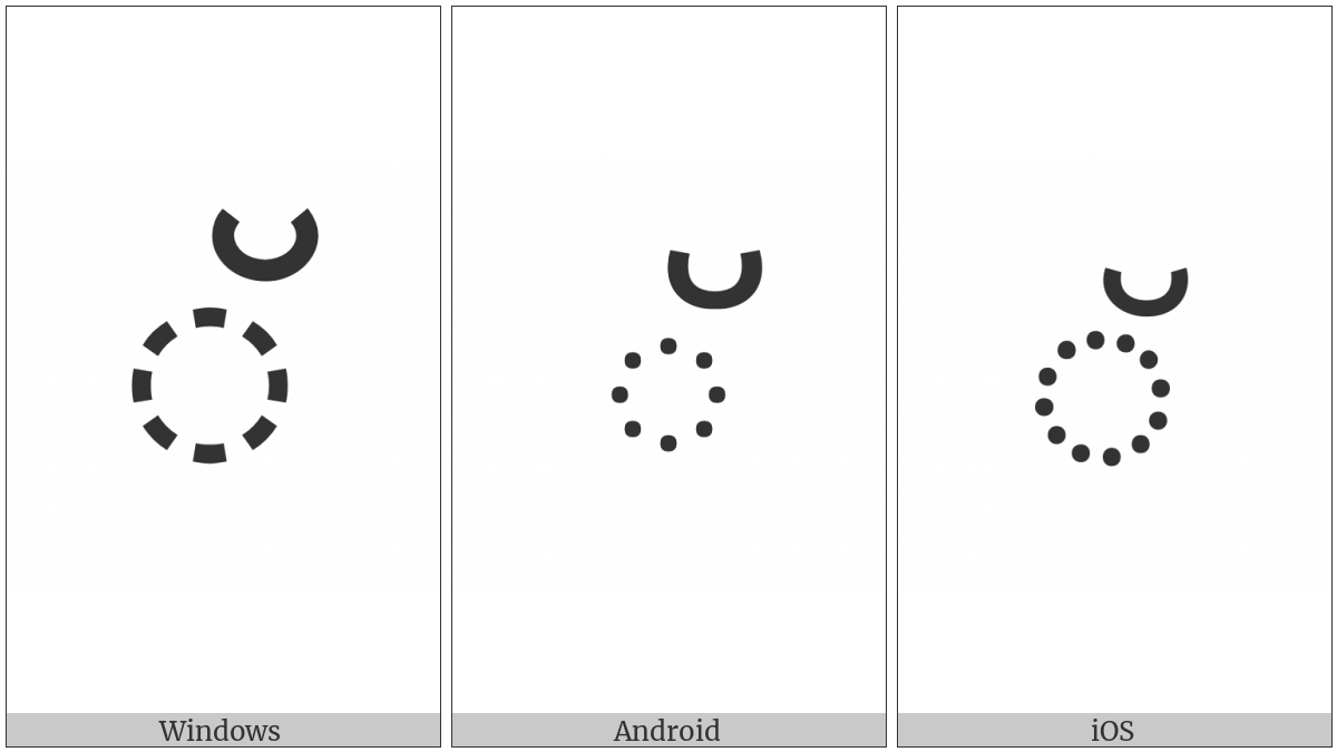 The image below shows how the “Malayalam Sign Virama” symbol might look like on different operating systems. If the font in which this web site is displayed does not contain the symbol and there is no fallback font able to render it, you can use the image below to get an idea of what it should look like.