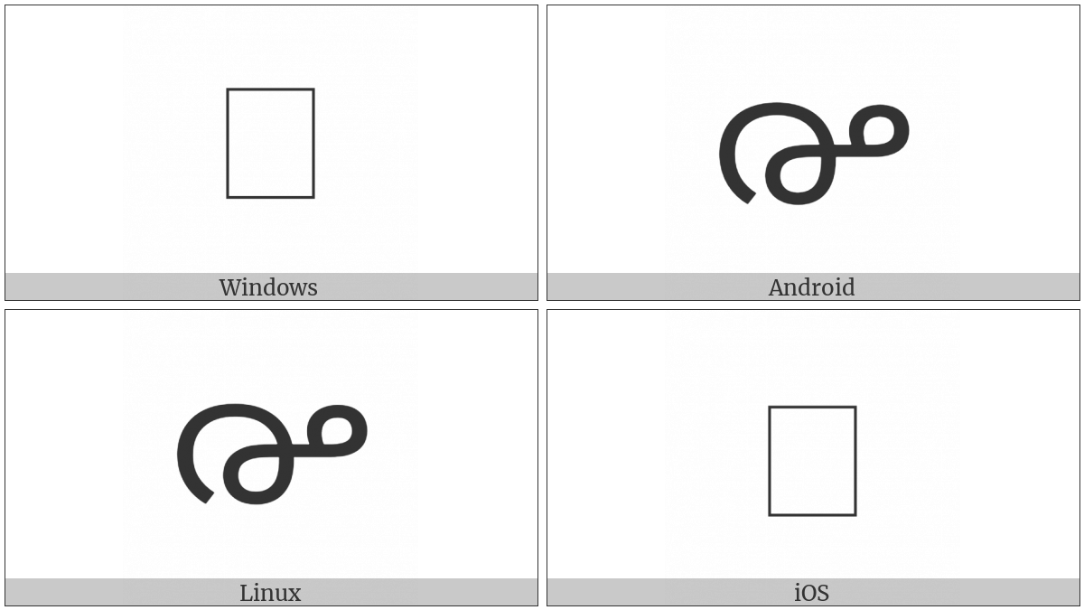 The image below shows how the “Malayalam Fraction One Fortieth” symbol might look like on different operating systems. If the font in which this web site is displayed does not contain the symbol and there is no fallback font able to render it, you can use the image below to get an idea of what it should look like.