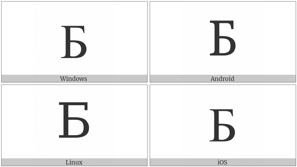 The image below shows how the “Latin Capital Letter B With Topbar” symbol might look like on different operating systems. If the font in which this web site is displayed does not contain the symbol and there is no fallback font able to render it, you can use the image below to get an idea of what it should look like.