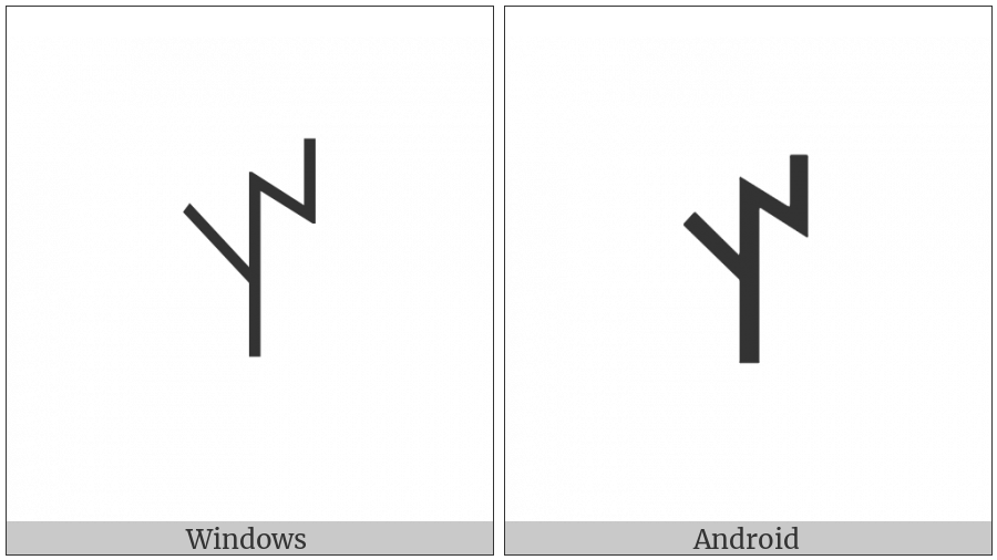 The image below shows how the “Yi Syllable At” symbol might look like on different operating systems. If the font in which this web site is displayed does not contain the symbol and there is no fallback font able to render it, you can use the image below to get an idea of what it should look like.