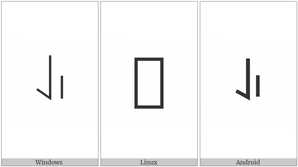 The image below shows how the “Yi Syllable Bu” symbol might look like on different operating systems. If the font in which this web site is displayed does not contain the symbol and there is no fallback font able to render it, you can use the image below to get an idea of what it should look like.