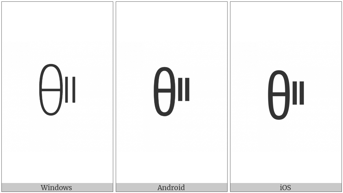 The image below shows how the “Yi Syllable Pie” symbol might look like on different operating systems. If the font in which this web site is displayed does not contain the symbol and there is no fallback font able to render it, you can use the image below to get an idea of what it should look like.