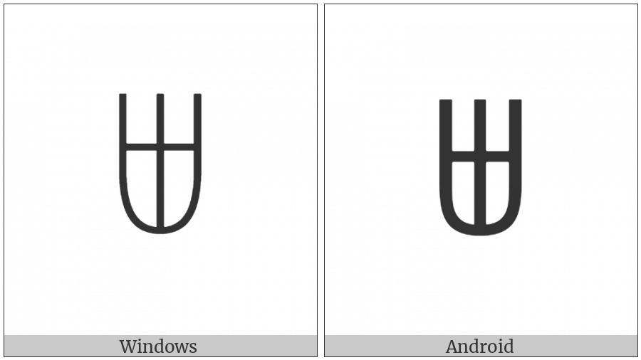 The image below shows how the “Yi Syllable Pa” symbol might look like on different operating systems. If the font in which this web site is displayed does not contain the symbol and there is no fallback font able to render it, you can use the image below to get an idea of what it should look like.