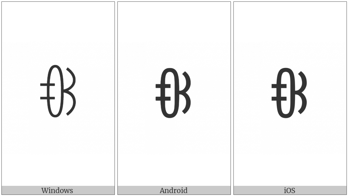 The image below shows how the “Yi Syllable Pot” symbol might look like on different operating systems. If the font in which this web site is displayed does not contain the symbol and there is no fallback font able to render it, you can use the image below to get an idea of what it should look like.