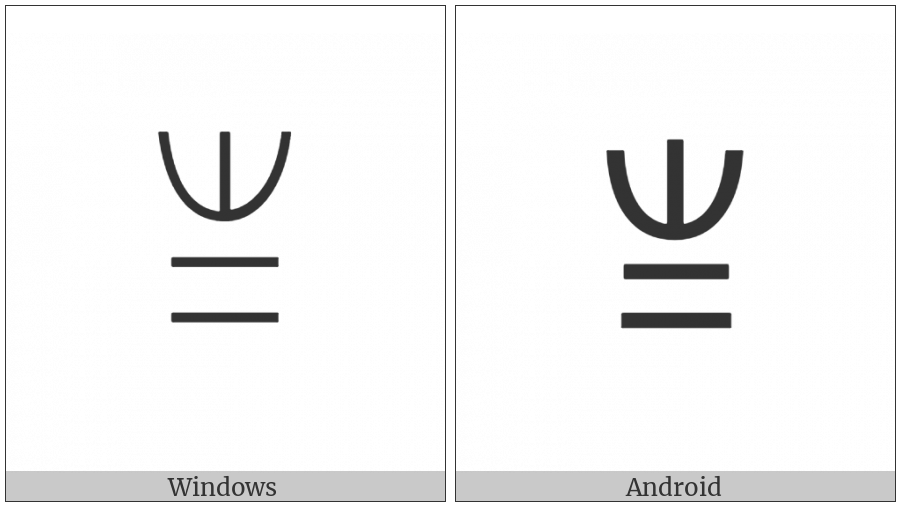 The image below shows how the “Yi Syllable Po” symbol might look like on different operating systems. If the font in which this web site is displayed does not contain the symbol and there is no fallback font able to render it, you can use the image below to get an idea of what it should look like.