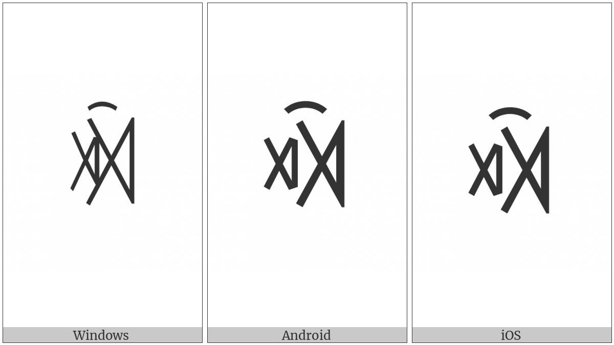 The image below shows how the “Yi Syllable Bbax” symbol might look like on different operating systems. If the font in which this web site is displayed does not contain the symbol and there is no fallback font able to render it, you can use the image below to get an idea of what it should look like.