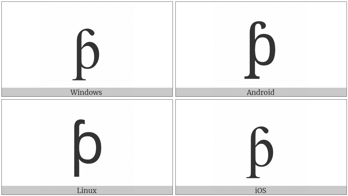 The image below shows how the “Latin Small Letter P With Hook” symbol might look like on different operating systems. If the font in which this web site is displayed does not contain the symbol and there is no fallback font able to render it, you can use the image below to get an idea of what it should look like.