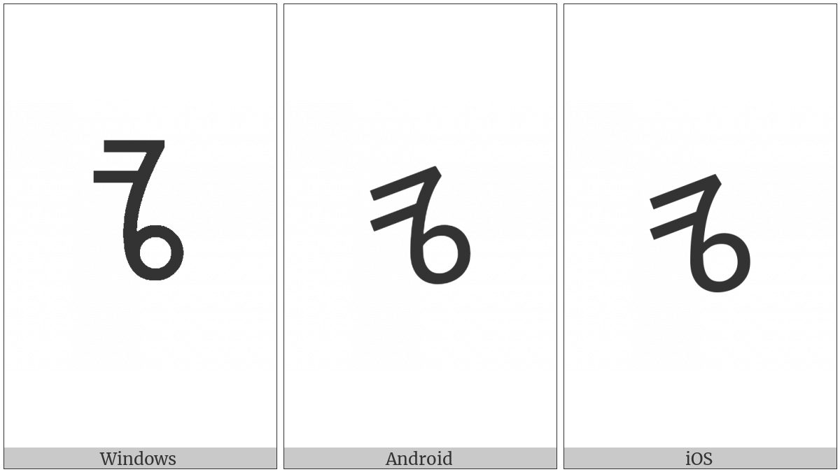 The image below shows how the “Vai Syllable Ca” symbol might look like on different operating systems. If the font in which this web site is displayed does not contain the symbol and there is no fallback font able to render it, you can use the image below to get an idea of what it should look like.