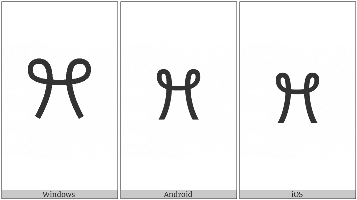 The image below shows how the “Vai Syllable Ma” symbol might look like on different operating systems. If the font in which this web site is displayed does not contain the symbol and there is no fallback font able to render it, you can use the image below to get an idea of what it should look like.