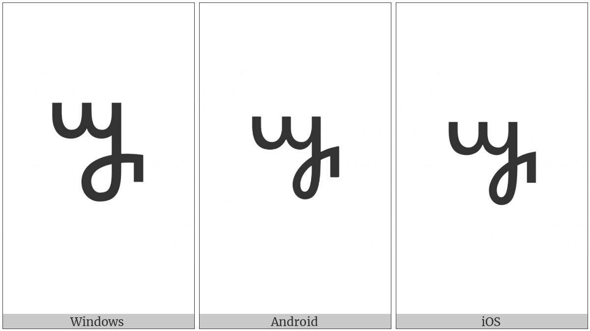 The image below shows how the “Vai Syllable Loo” symbol might look like on different operating systems. If the font in which this web site is displayed does not contain the symbol and there is no fallback font able to render it, you can use the image below to get an idea of what it should look like.