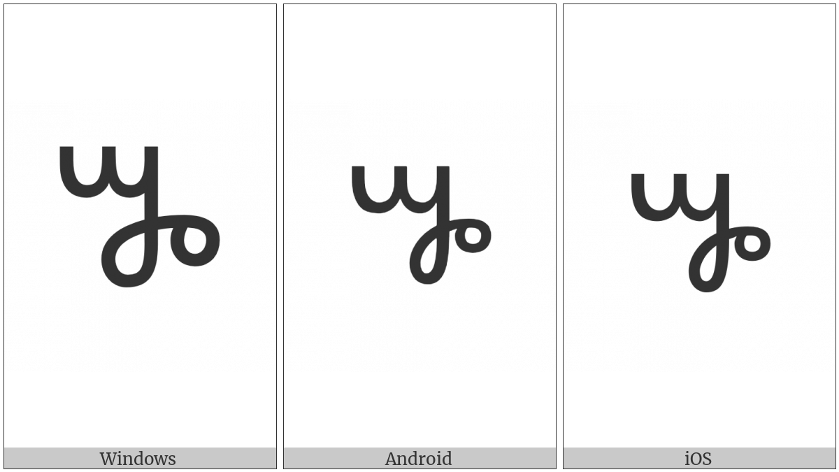 The image below shows how the “Vai Syllable Ndoo” symbol might look like on different operating systems. If the font in which this web site is displayed does not contain the symbol and there is no fallback font able to render it, you can use the image below to get an idea of what it should look like.