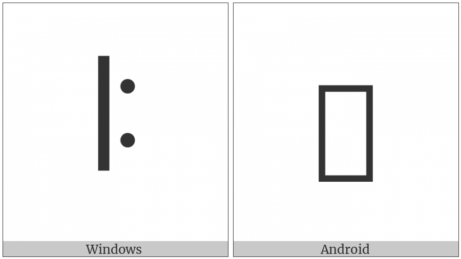 The image below shows how the “Vai Syllable Yoo” symbol might look like on different operating systems. If the font in which this web site is displayed does not contain the symbol and there is no fallback font able to render it, you can use the image below to get an idea of what it should look like.