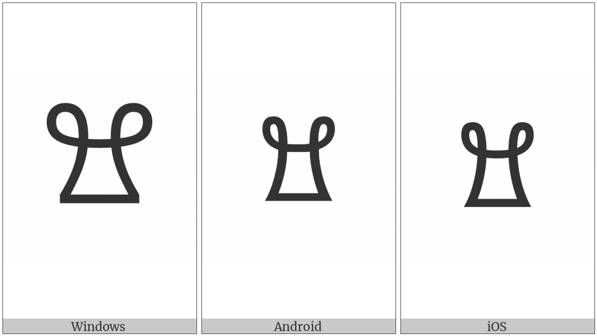 The image below shows how the “Vai Syllable Koo” symbol might look like on different operating systems. If the font in which this web site is displayed does not contain the symbol and there is no fallback font able to render it, you can use the image below to get an idea of what it should look like.
