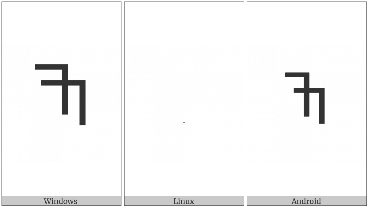 The image below shows how the “Vai Syllable Goo” symbol might look like on different operating systems. If the font in which this web site is displayed does not contain the symbol and there is no fallback font able to render it, you can use the image below to get an idea of what it should look like.