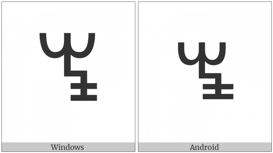 The image below shows how the “Vai Syllable Wun” symbol might look like on different operating systems. If the font in which this web site is displayed does not contain the symbol and there is no fallback font able to render it, you can use the image below to get an idea of what it should look like.