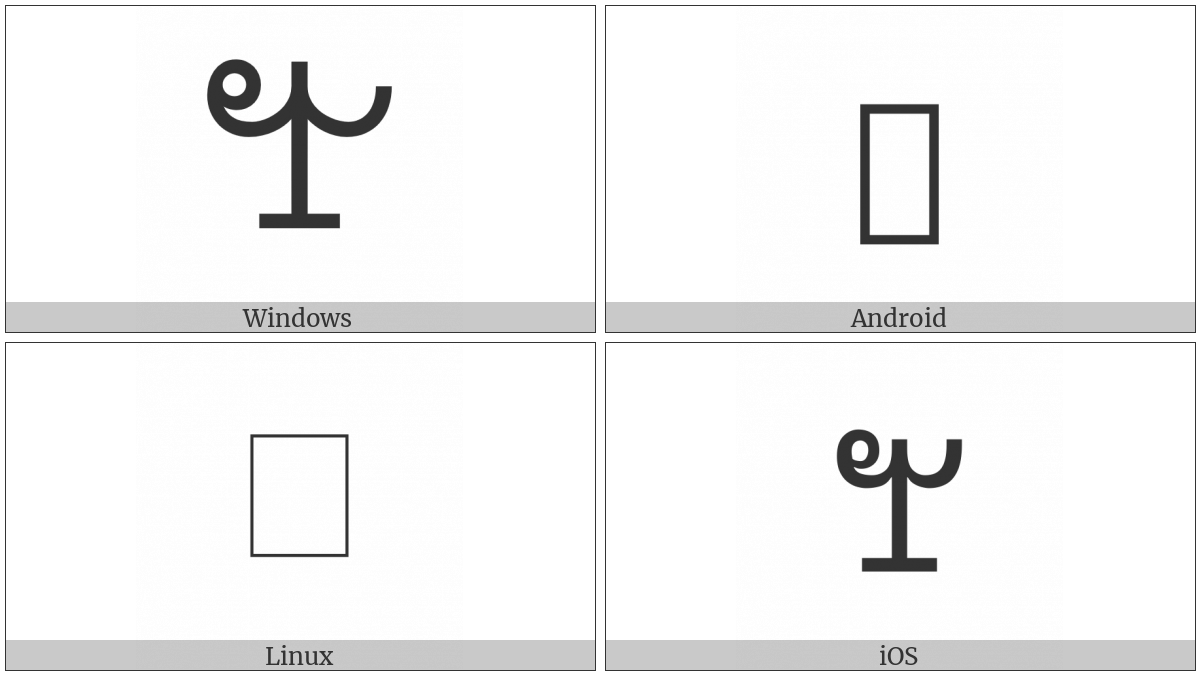 The image below shows how the “Vai Syllable Kpu” symbol might look like on different operating systems. If the font in which this web site is displayed does not contain the symbol and there is no fallback font able to render it, you can use the image below to get an idea of what it should look like.