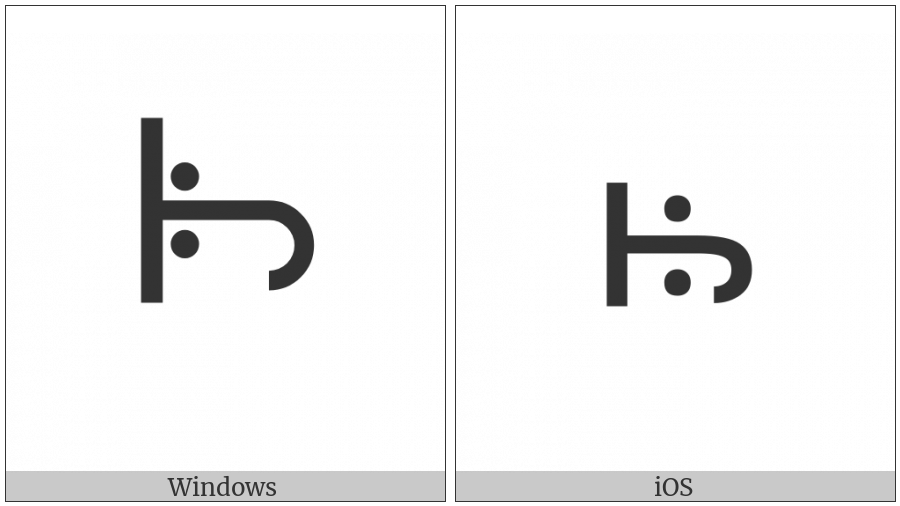 The image below shows how the “Vai Syllable Du” symbol might look like on different operating systems. If the font in which this web site is displayed does not contain the symbol and there is no fallback font able to render it, you can use the image below to get an idea of what it should look like.